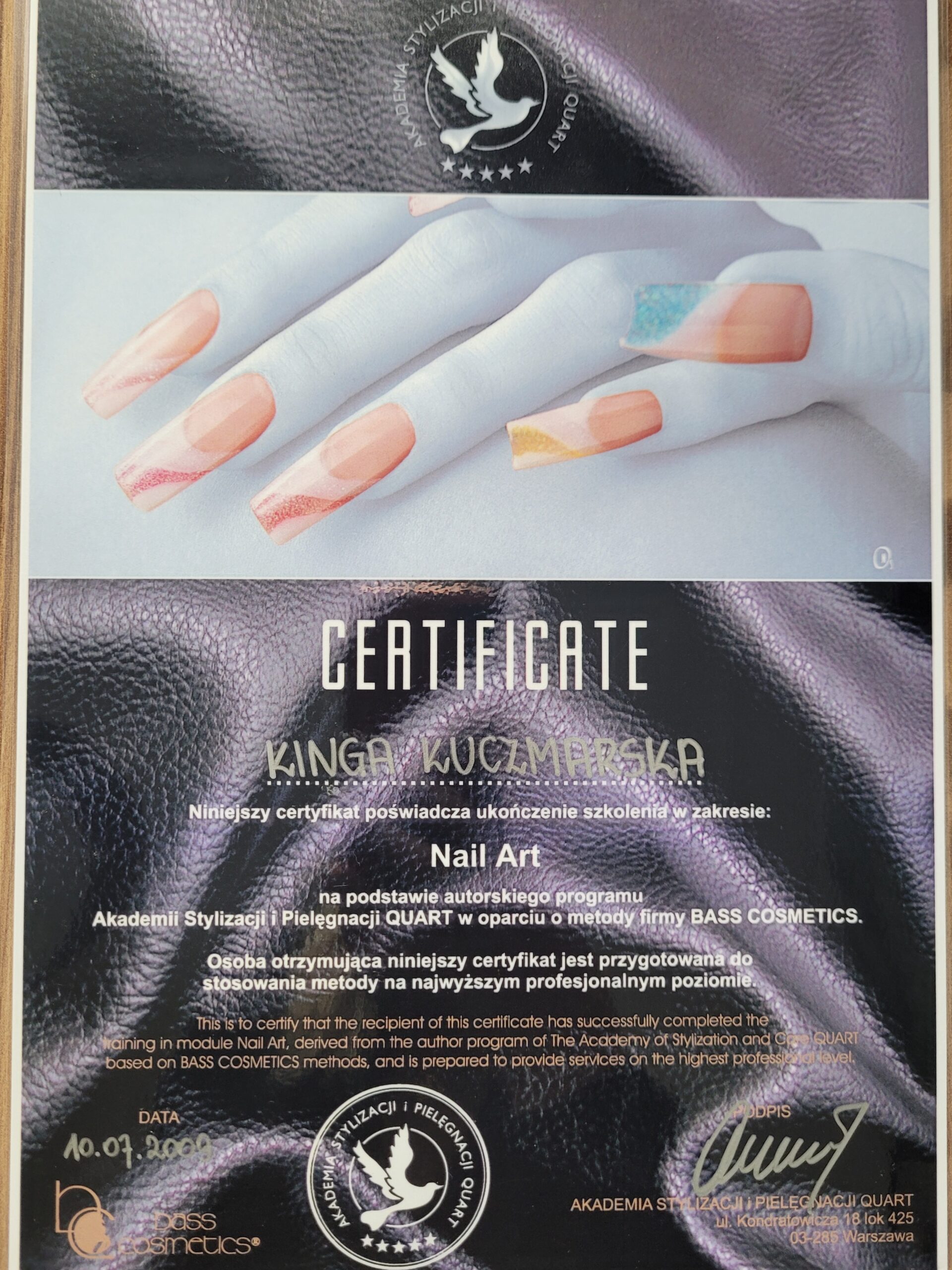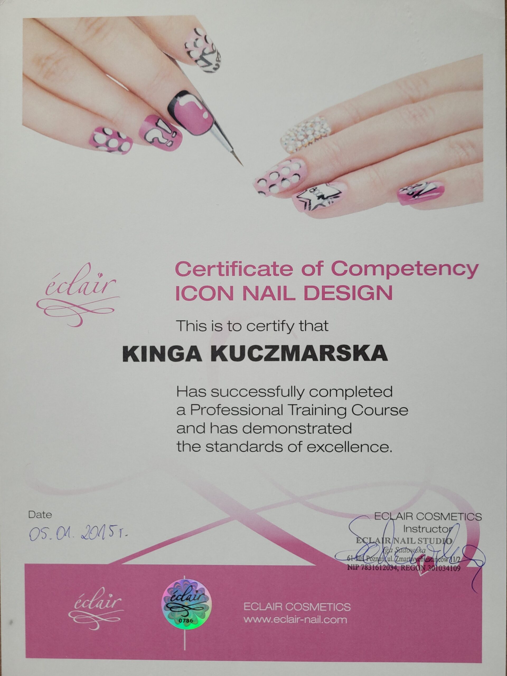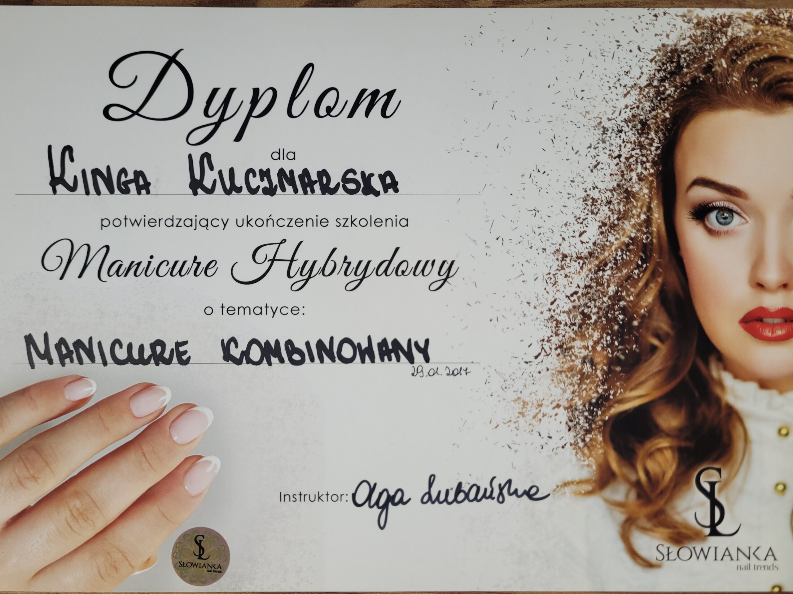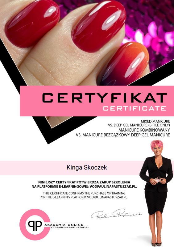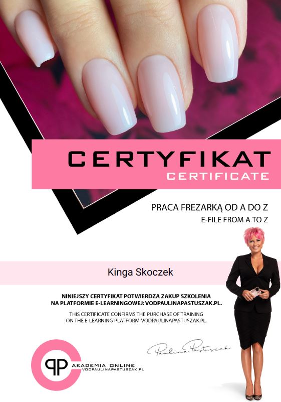 W 2009 roku ukończyłam pierwszy kurs stylizacji paznokci. Dwa lata później uzyskałam tytuł Technika Usług Kosmetycznych kończąc tym samym szkołę kosmetyczną. Od razu zaczęłam pracę na stanowisku kosmetyczki i stylistki paznokci, a w kolejnych latach uczestniczyłam w około 20 dodatkowych szkoleniach kosmetycznych.